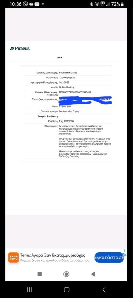 Πληρώθηκαν λογαριασμοί ρεύματος,ενοίκια,γιατροί.